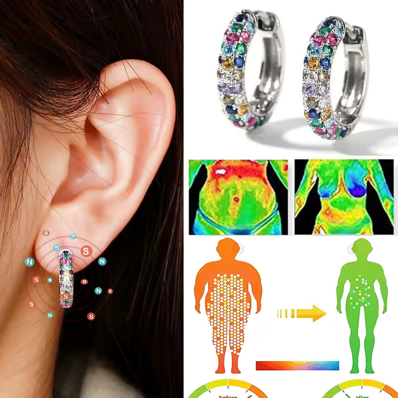 Zirkon taşlı lenfatik drenaj küpeleri, kulaktaki akupunktur noktalarını hedef alarak metabolizma, sindirim ve iştah merkezlerini uyarır.